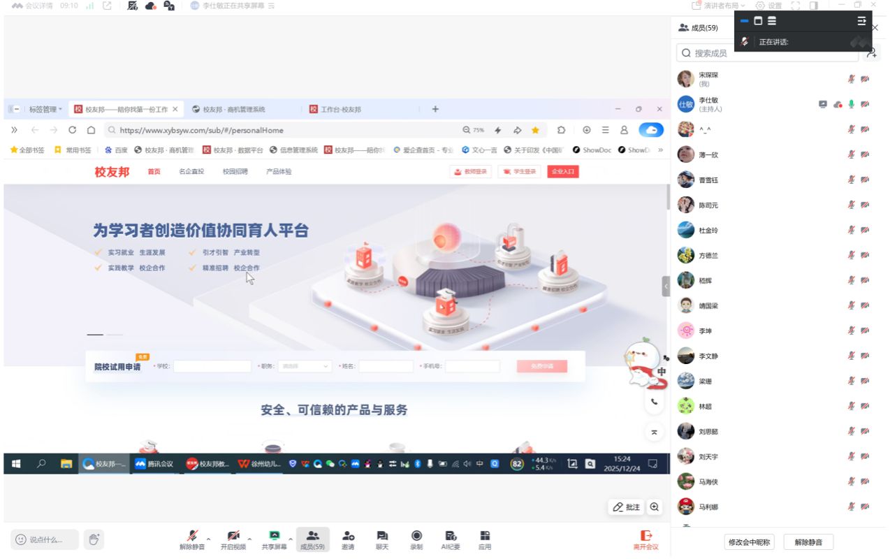 会议伊始,教务处宋琛琛副处长首先回顾了平台上线以来的运行情况。她指出,在全校各学院的鼎力支持与各位老师的积极配合下,校友邦平台已成为我校实习管理工作的重要载体,整体运行平稳有序。面对平台功能持续优化与实习管理精细化要求的提升,全体管理人员及指导教师需对平台进行“再学习、再深化”,旨在强化实习全过程管控,实现学生实习轨迹清晰可追溯、过程细节有据可查、实习成果科学可评的闭环管理目标。
